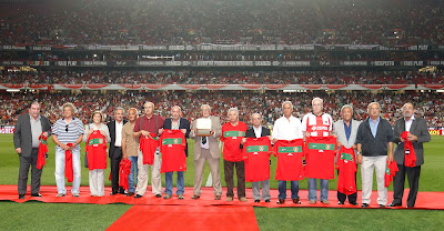 Não tinha ainda falado neste blog, da homenagem pública que a FPF realizou no passado dia 4 de Junho, durante o intervalo do Portugal/Noruega, aos Campeões da Europa de Juniores de 1961. Estive envolvido na sua organização desde o primeiro momento e esta foi consequência de uma promessa feita a quatro pessoas, Nogueira, Amândio, Manuel Rodrigues e Dr. David Sequerra, três ex-jogadores e o seleccionador dessa equipa. A cada contacto individual nascia imediatamente empatia com esses homens e a sua resposta foi unânime, lá estaremos.