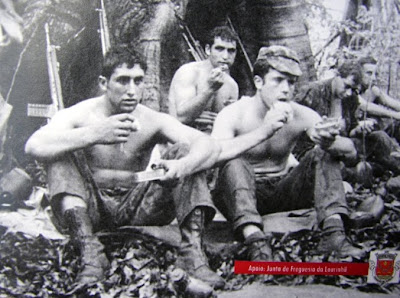 Porém, para compensar o horror, realista de uma forma sórdida, do cenário desta produção barata, súbita e quase magicamente, deixo de ouvir a voz monótona do agente estagiário de turno, na sua lenga-lenga moralista, e encontro-me de novo na Guiné, num acampamento de circunstância nas margens do grande rio, a poucos quilómetros do nosso aquartelamento em Tite onde, em Janeiro desse ano, com um forte ataque da resistência, tinha começado a insurreição armada. Agora, a situação era diferente, para bastante pior, com diversos focos de resistência espalhados por todo o território e com os guerrilheiros (os turras da linguagem popular e o in no paleio militar) a trocar as armas artesanais por equipamento mais sofisticado do que o nosso).